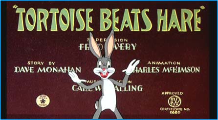 During the entire race, Bugs Bunny is trying to cheat, cut corners and sabotage the Tortoise in order to win the race. The Tortoise on the other hand just runs the race and stays the course. When all is said and done, the Tortoise wins and proves the point, Slow and Steady wins the race.
